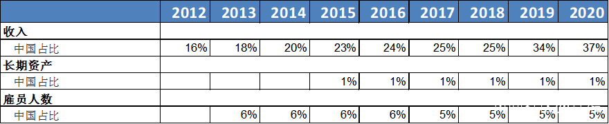 過去十年,憑藉優秀的產品性能,英飛凌在中國區收入比重從15%左右提升到現在的接近40%,成為其最大的收入來源地。而英飛凌實現的這一驚人數字,靠的卻是極少的本地化,其在中國的資產(注:可以簡單理解為廠房和產能)佔比僅僅1%,員工人數佔比也將將5%。