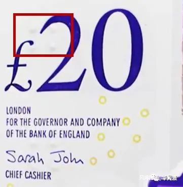 首先,你可以把紙幣稍微傾斜,如果紙幣正面左下角的全息圖像沒有從“Twenty”變為了“Pounds”,那麼,這張紙幣很大可能性上是假鈔。