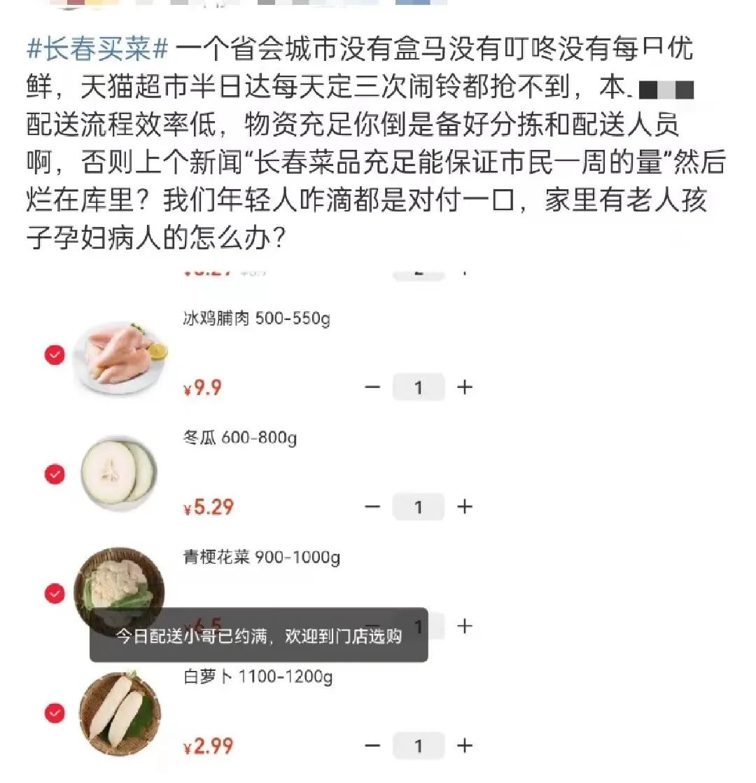有人在小紅書吐槽,自己根本買不到菜,因為根本不配送到自己小區來。