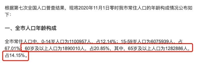 60歲及以上的老人佔比20.85%,65歲及以上的也達到了了14.15%。