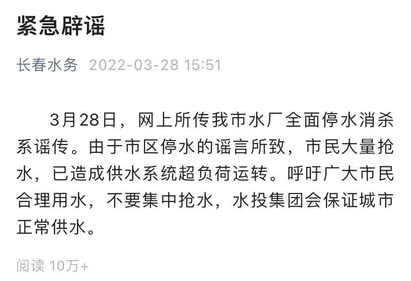下午快4點的時候,長春水務再次發佈通知,還是闢謠: