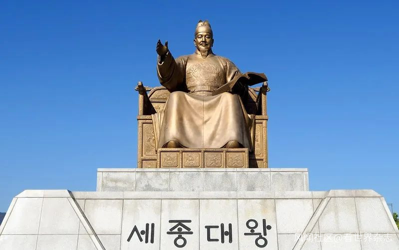 在如今光化門廣場上。更是立着訓民正音(韓文)發明者——世宗大王李裪的大型銅像。