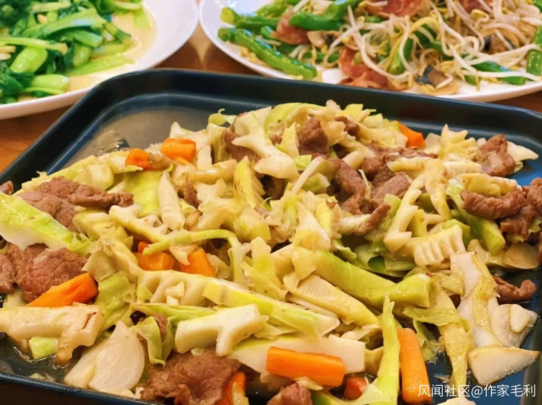 到晚上,小陳把筍切塊後,爆炒了一盤牛肉,上桌我們跟艾文説:還是大人先吃吧,萬一有農藥的話,大人比較扛得住。
