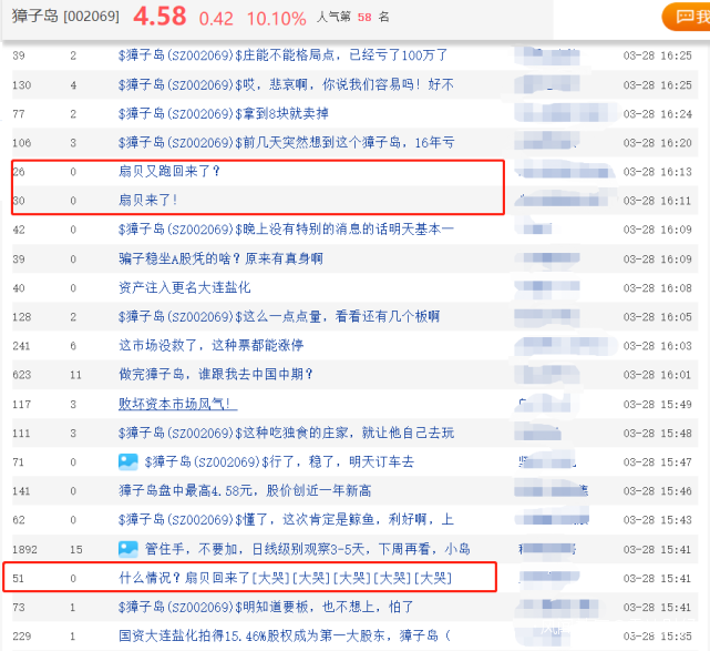 對於獐子島的漲停,股吧內有不少網民調侃:“是不是扇貝又跑回來了”。