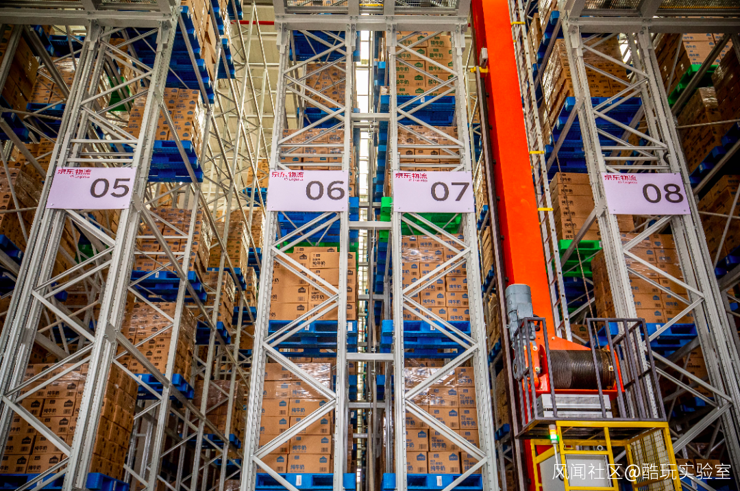 在巨大的倉庫內,幾十萬件商品整整齊齊地碼在16.8米高的貨櫃上。
