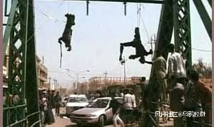 4名黑水士兵被殺死後,憤怒的伊拉克反美武裝還將車輛點着焚燒,把4個人的屍體燒成了焦炭,拖到費盧傑城遊街,把屍體掛在橋樑上示眾,期間無數伊拉克民眾湧過來朝屍體吐口水,集體歡呼叫好。