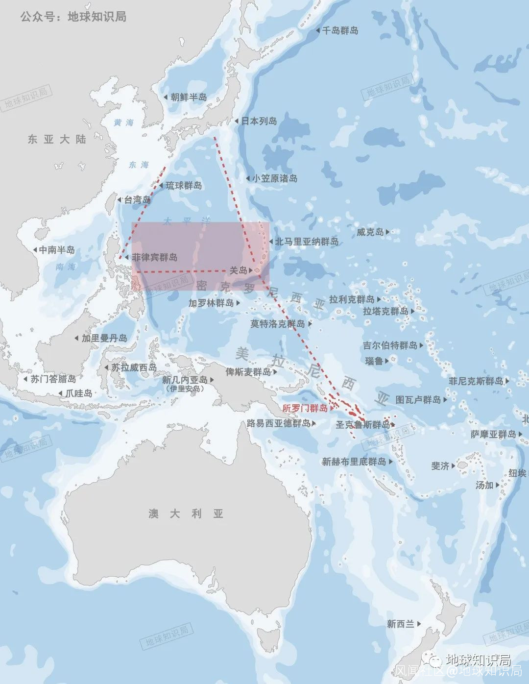而所羅門羣島作為這串“環澳大利亞北方島鏈”的重要組成部分,正好攔在了巴布亞新幾內亞、聖克魯斯和瓦努阿圖之間,是澳大利亞通向美國航線的必經之路。