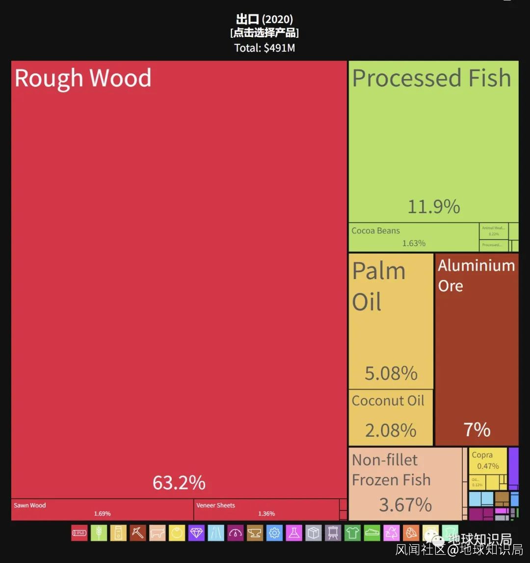 出口項則很單一,主要是木材、魚、棕櫚油(圖2)