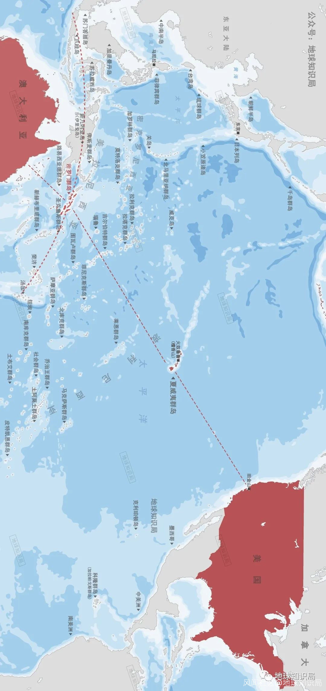 美國本土——夏威夷羣島——所羅門羣島——澳大利亞▼