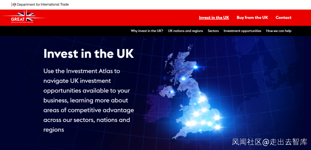 去年 10 月,英國在倫敦舉辦 “全球投資峯會(Global Investment Summit)” 。為了更加直觀、透明地展示信息,幫助全球投資人掌握最新投資政策和投資機遇,英國國際貿易部重磅推出了全新線上平台 —— 投資地圖(Investment Atlas)。訪問鏈接: