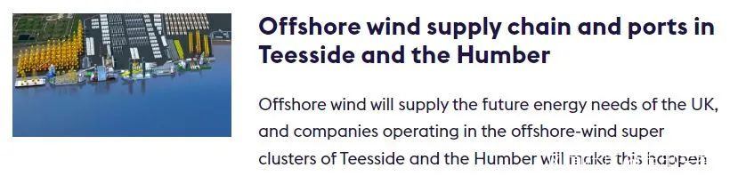 2021 年,英國政府宣佈了投資 9500 萬英鎊在亨伯河和蒂賽德建造兩個新的海上風港樞紐的計劃。該項目對製造高價值海上風電部件的公司,以及在相關子部件和系統供應鏈中運營的公司來説也是一個獨特的商機。