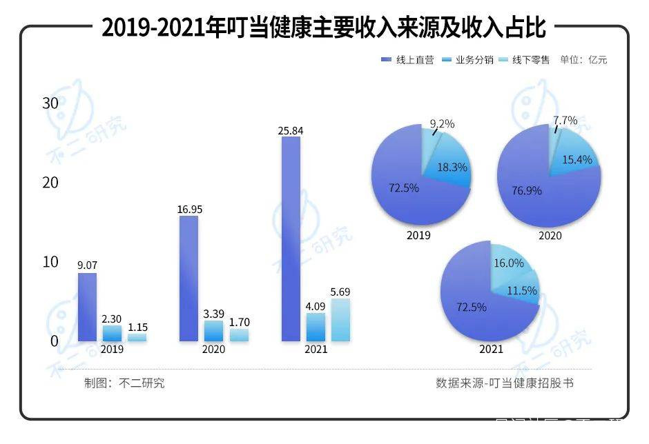 據招股書顯示,2019-2021年,叮噹健康收入71.83億元,淨虧損27.93億元。三年間,來自藥品及醫療健康業務的收入均達95%以上,線上直營收入超70%。