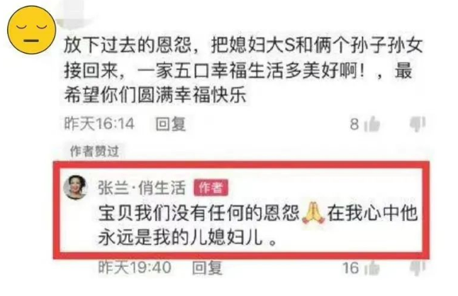 汪小菲的媽媽張蘭還在點贊網友支持汪小菲大S複合的評論…