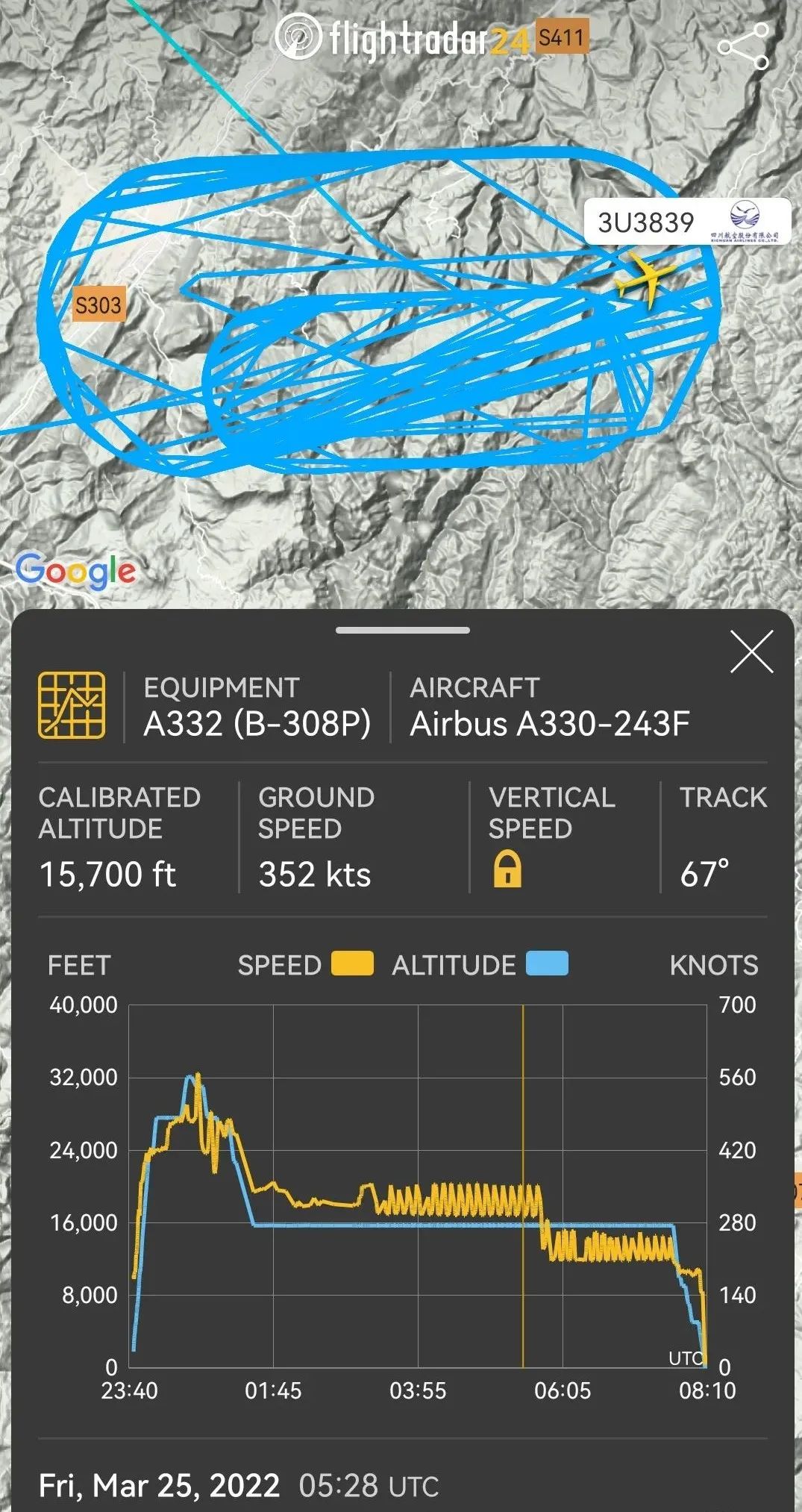 3U3839航班飛機着陸前的軌跡 | 圖源:Flightradar24