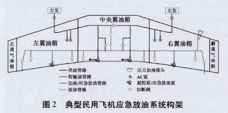 這個系統通常與供油系統整合在一起,飛機的大部分燃油都裝在機翼那段,應急放油系統能夠把燃油泵到翼尖噴出,並且能夠控制放油速率。