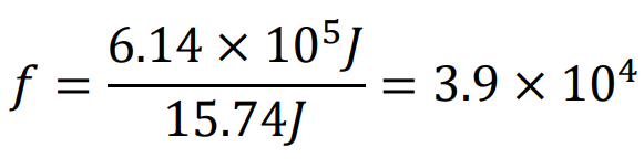 再用這個結果除以史密斯一巴掌的能量,我們在之前算出過是15.74J——
