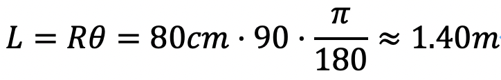 為了計算速度,自然還需要手掌移動的距離。但是,因為視頻的機位離得比較遠,角度也很刁鑽,只能看到史密斯的手臂從身前揮了過去,他的手掌移動的距離不太好看得出來。因此,我親自模仿了一下畫面中的過程,右臂從右揮到左,粗略估計轉過的角度是100度。假設史密斯的臂長是80cm,以及在掌摑過程中他的手臂以肩膀為圓心劃過了一段圓弧,那麼手掌移動的距離就等於: