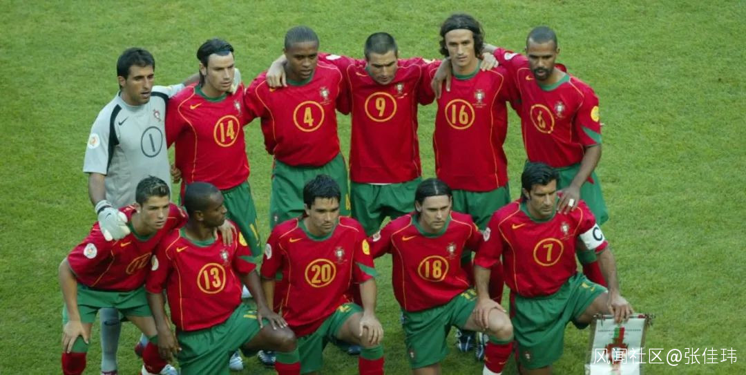 有趣的是,那年歐洲亞軍葡萄牙,的確有黃金一代如31歲的保萊塔、32歲的科斯塔、32歲的菲戈,但也有27歲的德科和馬尼切,有19歲的C羅,有22歲的波斯蒂加,有25歲的西芒,有25歲的費雷拉、26歲的卡瓦略呢?