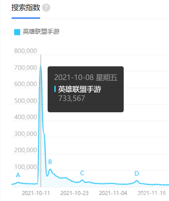 英雄聯盟手遊剛開服當天,達到了 70 多萬次搜索。
