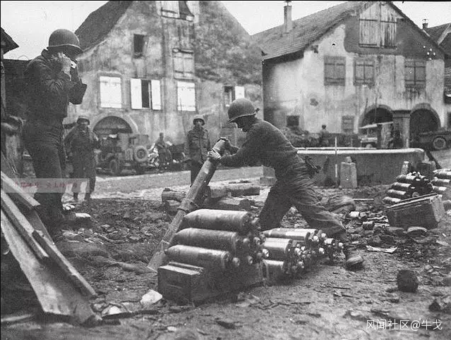 上圖就是二戰時美軍正在發射的107毫米化學迫擊炮,炮並不特別大,但炮彈特別大。