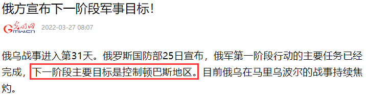 那麼俄羅斯下一階段的軍事目標是什麼呢?控制頓巴斯地區。