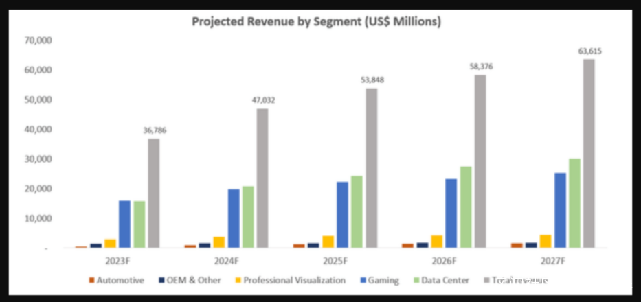 DRIVE Sim 及其新的軟件增強功能是對 NVIDIA 在“渲染、圖形和 AI”方面的行業領先專業知識的最新驗證,同時也為安全高效地開發和部署下一代自動駕駛技術奠定了基礎。英偉達近年來越來越關注通過其人工智能實力滿足汽車技術需求,這恰逢其時,預計從長遠來看將帶來巨大的紅利。預計該行業將快速發展,未來五年對自動駕駛軟件的需求預計將以36% 的複合年增長率 (“CAGR”) 增長,並帶來600 億美元的機會到下一個十年,這將為 NVIDIA 的汽車產品生態系統帶來強勁的動力。