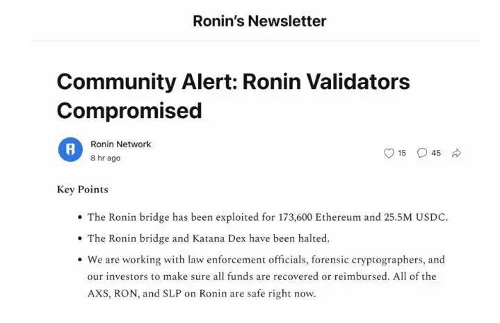 16. 一遊戲區塊鏈系統被黑 逾6億美元加密貨幣失竊