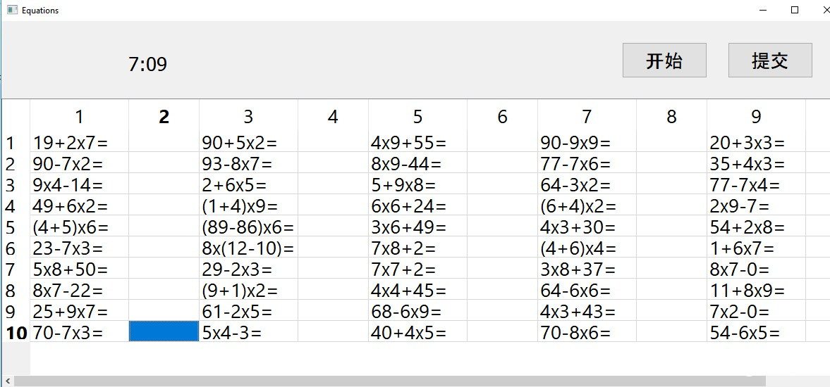 軟件呢,還是要看需求,有需求,有需求改動,它就不簡單。比如一開始做就是出題,校驗結果。後來發現有幾個問題,一是非法輸入,孩子不光輸數字,有時候瞎按。還有拉下,或者回車,要讓它自動換行。找到第10行以後,再回車,要能去到另一列第1行。還有那個倒計時,孩子説看着緊張,讓我不要顯示,不顯示後來又不知道時間……後來又改成,點擊可以隱藏,再點擊顯示……這些都和真實做軟件,根據需求改動修改軟件一樣啊。
