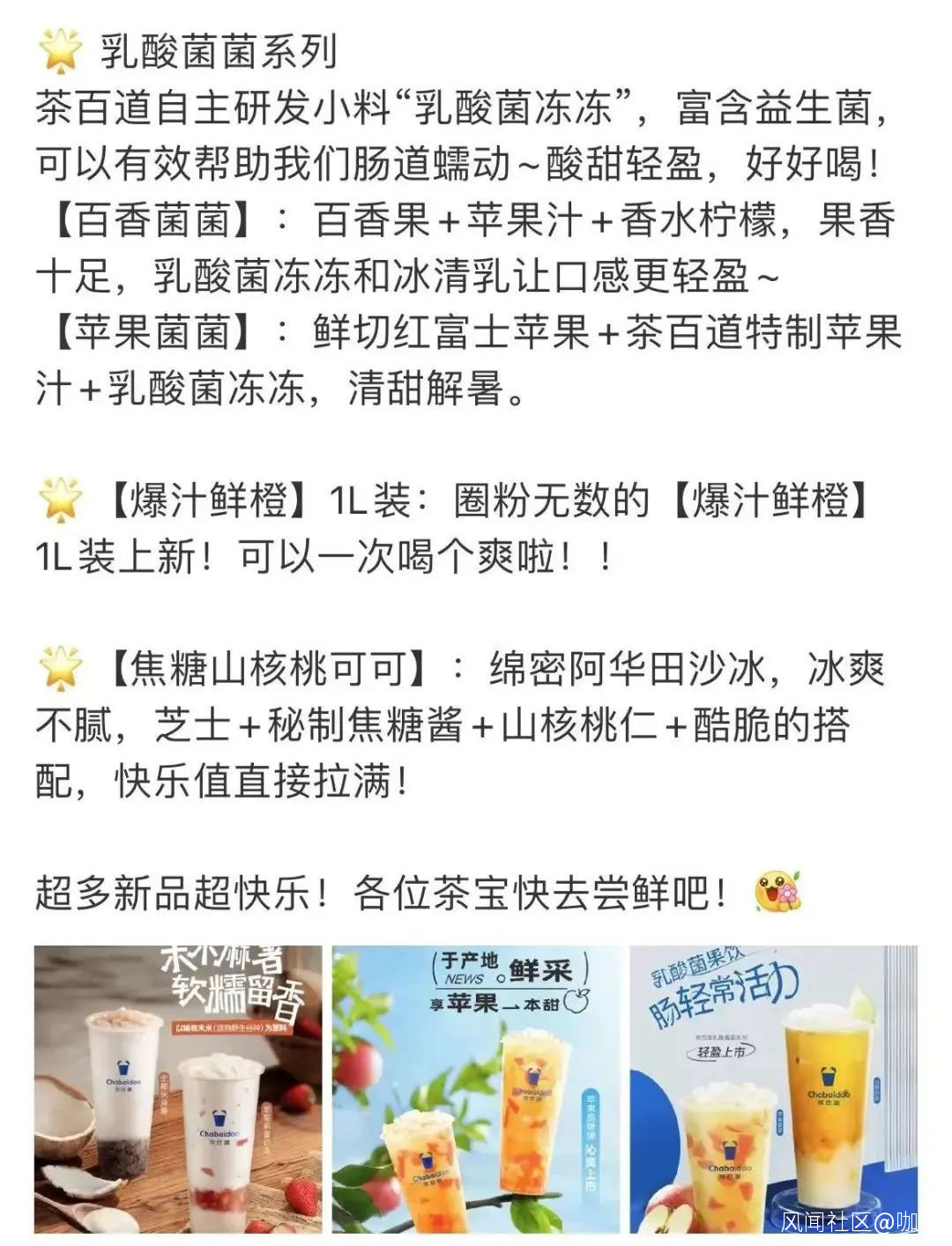 這幾款產品有個共同點:都用到了乳酸菌元素,這或許是品牌今年發力水果茶風味的一個方向。