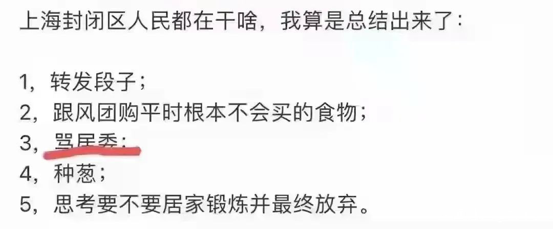 我把好多上海段子發給一個北京的朋友,她沉默良久,然後説:“還是頭一次見到疫情核心區的人這麼樂呵。”