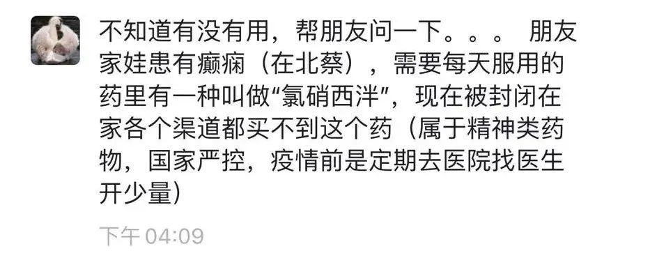 昨天有個讀者説,朋友家的孩子需要一種精神類處方藥,由於被封控導致求藥無門,問我能不能幫忙。
