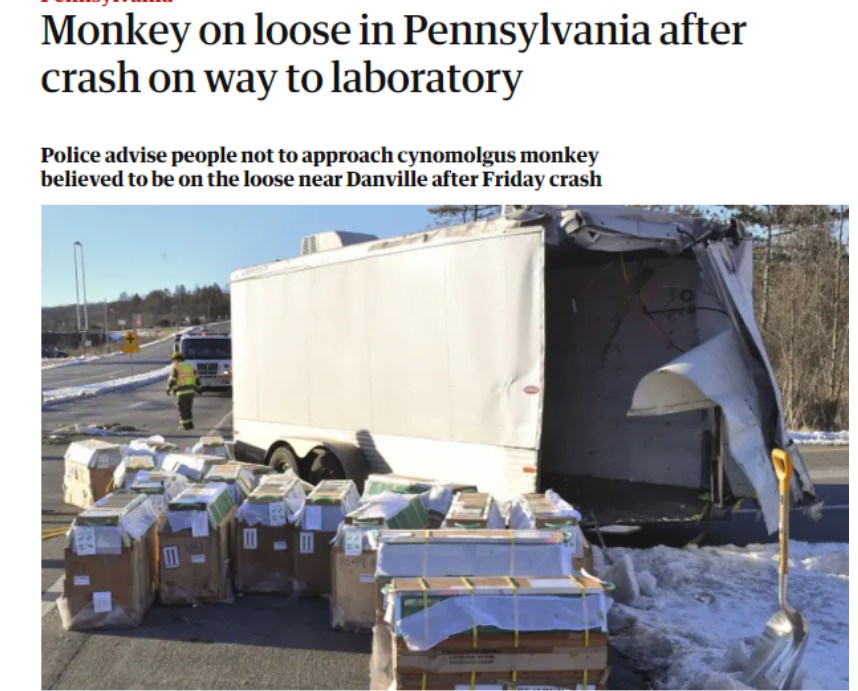 賓西法利亞猴子的意外逃跑,則因為美疾控中心快速對3只逃跑猴子安樂死,美警方嚴厲警告“任何人不得接近”,一名美國婦女接觸後“感染疑似新冠病毒”,再次暴露了一項美國“神秘的生物病毒計劃”。