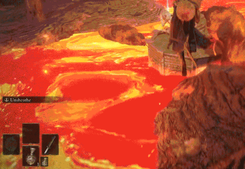 在此之前,為了能儘快拿到5到7級的失色鍛造石強化武器,速通者都會選擇被學院底部的鐵處女拉進體內傳去火山。在這段路線上,速通玩家們研究出一個通過骷髏怪的斬殺判定來躲過掉落傷害的技巧,很長時間內都是最佳方案。