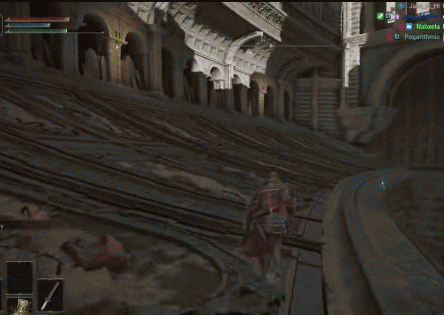 已成為老頭環速通必備技能的錯誤傳送BUG,早在黑魂1中就已經出現;LilAggy的紀錄中有一段從王城到湖區坑道的反向開圖,利用的就是黑魂系列中一直存在的“屍體按電梯”技巧;還有剛剛被開發出用法的飛馬BUG,在幾乎所有前作裏都能找到類似玩法:黑魂2的“Parrywalking”、黑魂3的“惜別之淚BUG”和《只狼》的“空氣游泳”。