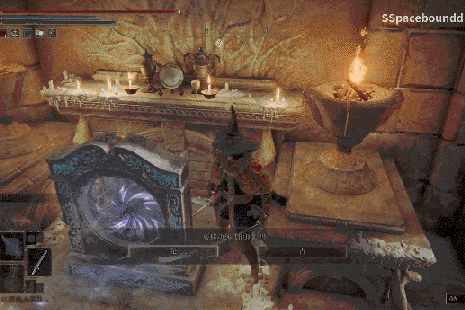在它傳送到圓桌廳堂後,那方寸地圖間的路線也被他切割成了兩段。前半段是從大賜福跑到鈴珠老婆婆處購買鍛造石,購買後他會馬上退出遊戲。這樣等他再登遊戲時,人物就會被傳送回圓桌處,又省去了返程的這幾步路。