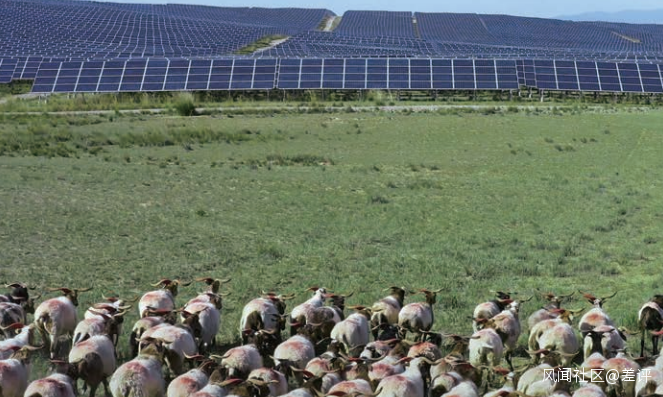 反正光伏板上發電、板下放牛,有一説一這畫面還挺適合做壁紙的。