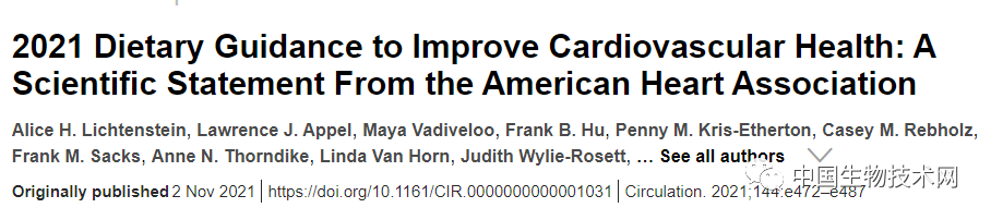 去年,心血管領域頂級期刊、美國心臟病協會(AHA)旗下期刊**《Circulation》**(IF=29.69)**發佈了AHA的最新科學聲明:2021年改善心血管健康飲食指南。****這是該協會自2006年以來首次更新其健康指南。**美國心臟學會的飲食健康指南是美國最具影響力的醫學指南之一。