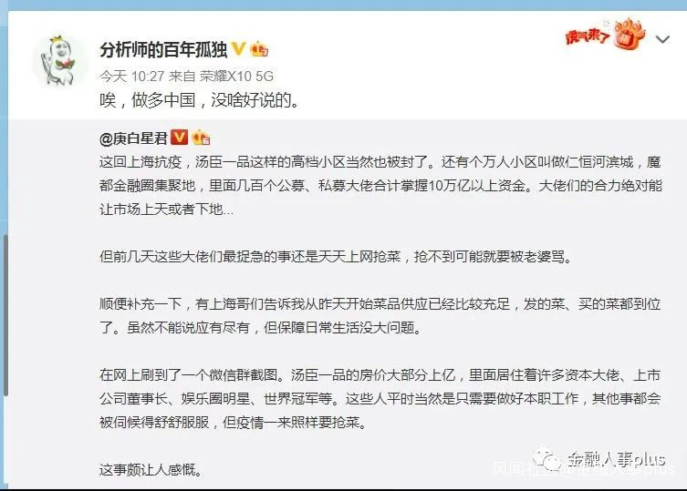 2022年4月7日,在上海疫情的大環境下,投資女王為了自己、家人、孩子下頓的麪包和牛奶,奔波在小區羣和私域團購小程序之間,多年之後回想,是不是也會唏噓不已。