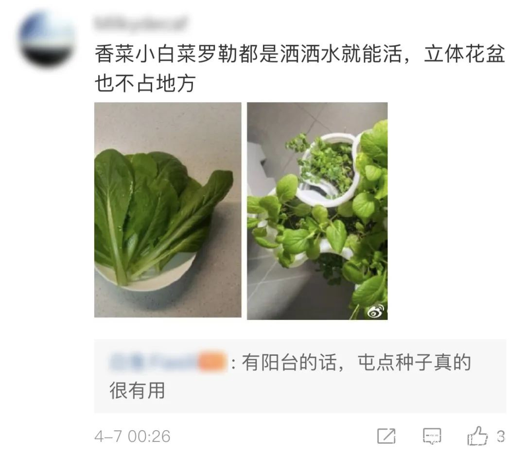 還有更厲害的,被封控的第一天就已經開始耕種了。三四月份,春耕好像很合適?不過是陽台花園的迷你版春耕