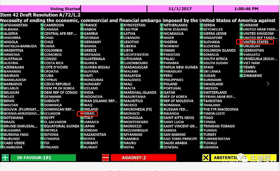 一票是美國自己,另一票是以色列。