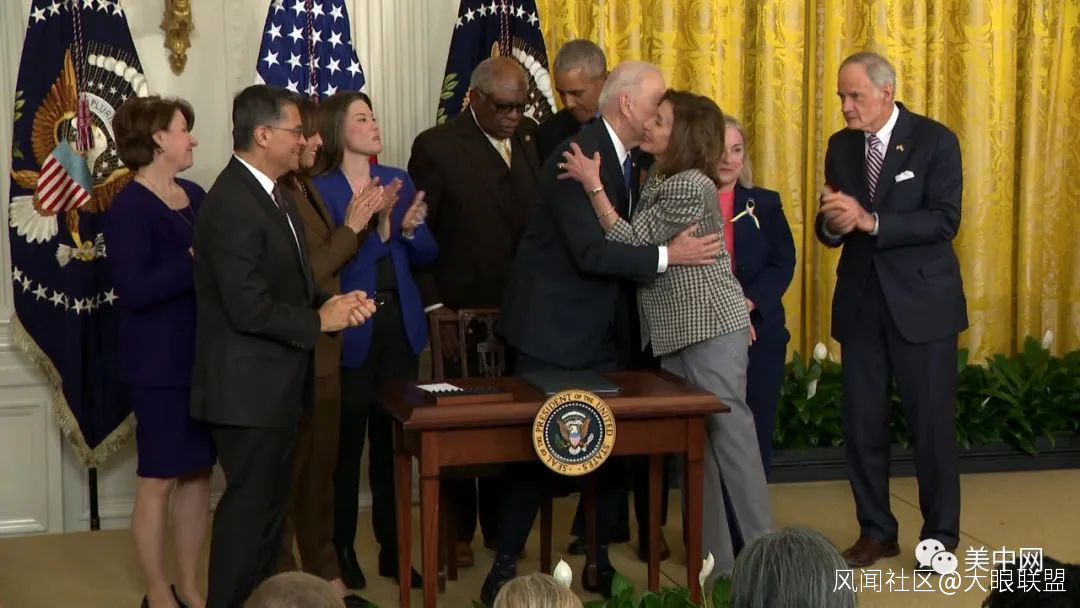 圖為週三,也就是佩洛西宣佈確診的前一天,她與拜登一同在白宮出席活動。拜登當日晚些時候的檢測是陰性。