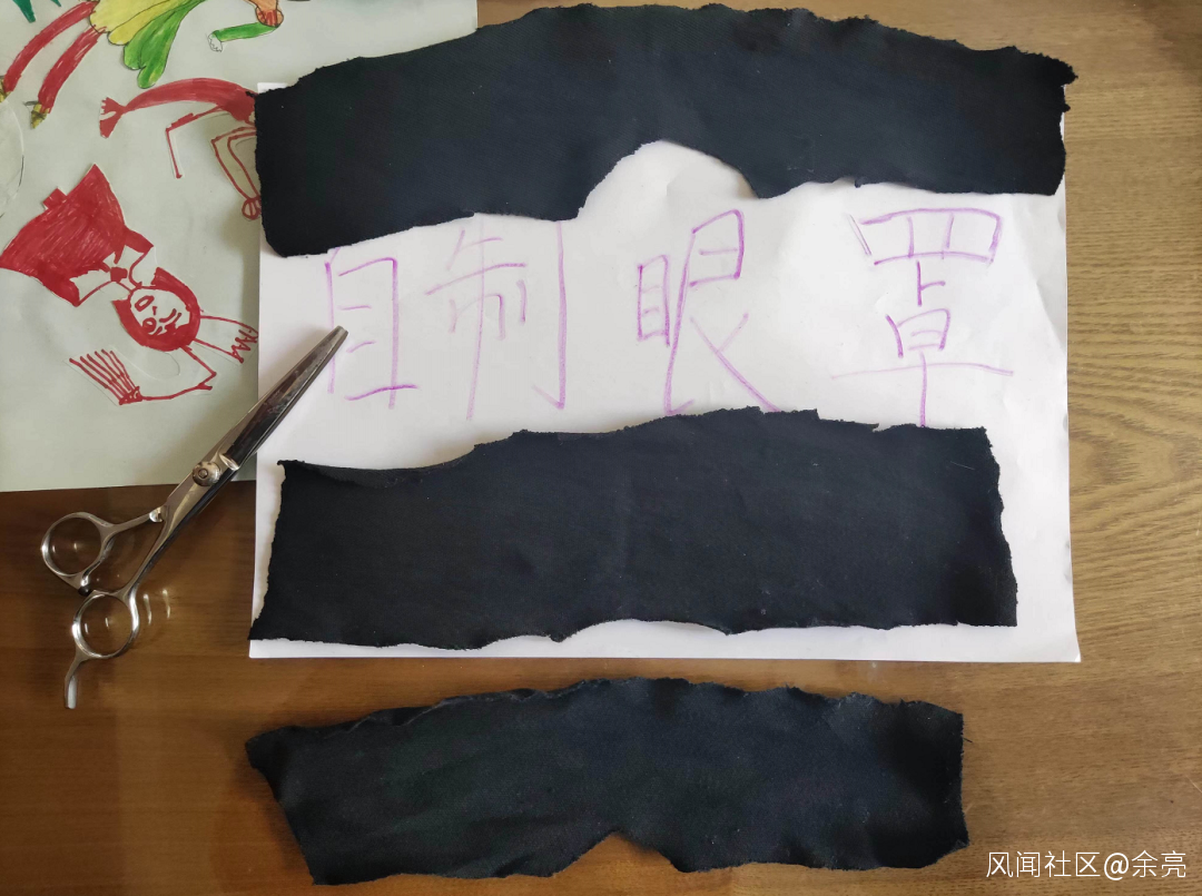 隔離要帶哪些東西?網上列出的清單不少。如果是方艙裏,晚上不關燈,需要眼罩。眼罩沒有現成的,拿小孩舊衣服剪了幾個。
