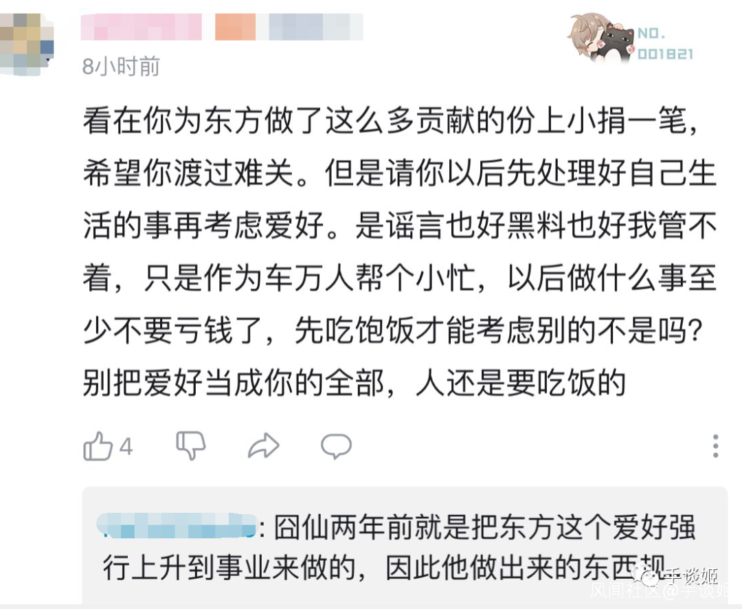 然而事情並未結束。**囧仙的這次求助,讓諸多東方人產生了思考,以及意見碰撞。**姬前往東方吧查看,相關帖子還不少。