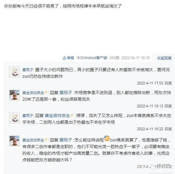 當然,還有更多的人對東方在國內的發展表示擔憂。就像姬前面所説的,在正傳玩法並非主流,新人入坑數減少,二創作品數量下滑的情況下,東方雖不至於藥丸,畢竟其現存的體量夠大,但如何逆轉頹勢,估計是許多東方人所思考的。