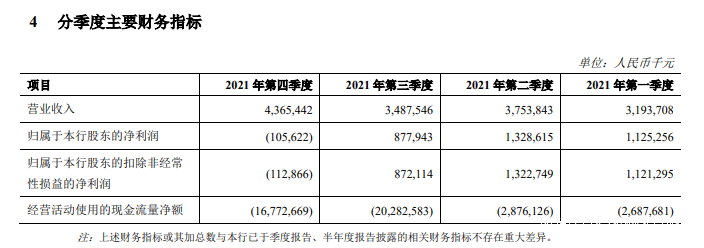 3.以淨利潤來説,鄭州銀行2021年度的淨利潤以“年”與“季度”區分的話,走向了相反的道路上。