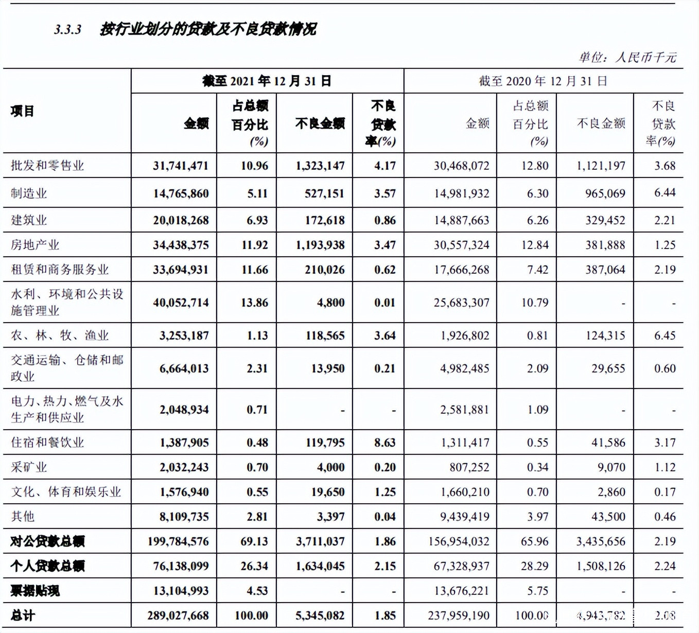 尤其是在房地產貸款方面,據鄭州銀行年報數據可知:截至去年末,房地產業貸款金額佔比較2020年下降0.92%至11.92%,但不良貸款率卻由1.25%升至3.47%,上漲2.22個百分點;不良貸款餘額11.94億元,較年初的3.82億元暴增212.64%。