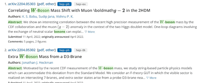 [2]https://arxiv.org/search/?searchtype=all&query=W+boson&abstracts=show&size=50&order=-submitted_date