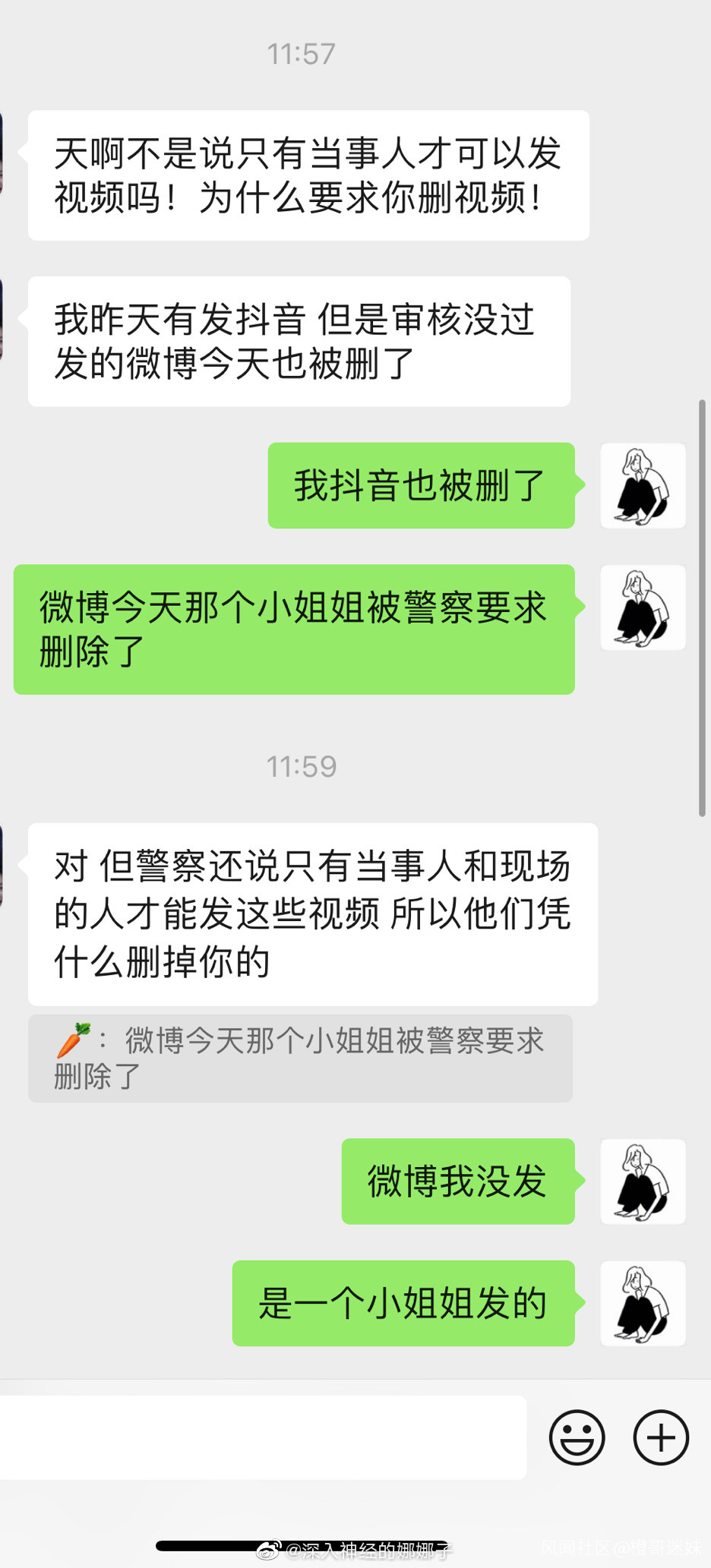 “警察説要當事人和現場的人才能發這些視頻”,於是當事人@深入神經的娜娜子 出面了。
