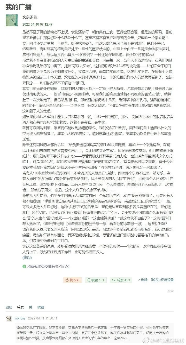 後來這個廣播在豆瓣上被刪掉了,於是原博主又在微博上發了一遍文字版: