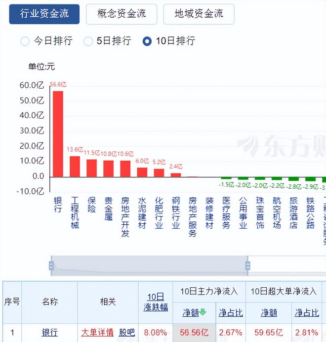 事實上,北上資金可能對此早有所覺。今年以來,銀行板塊獲北上資金連續加倉。與去年年末相比,北上資金持倉的銀行股市值上升了263.29億元,遠高於第二名的144.94億元。最近10日,滬深兩市銀行主力淨流入額達56.56億元,遠超其他板塊。